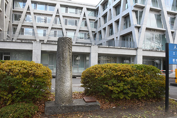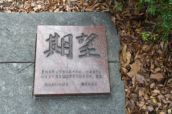 公開施設、記念碑等 工学部土木工学科(旧仙台高等工業学校本館)/昭和30年代撮影 東北帝国大学工学専門部(のちの東北大工学部土木工学科)/1919(大正8)年頃 南六軒丁新館 東北大学工学部土木工学科 創立三十周年記念碑 【碑文】 期望 東北大学工学部土木工学科 土木同窓会 創立三十周年記念事業実行委員会 建立 昭和五十八年佳月 岩﨑[]夫 書 関連情報 工学部創立百周年 https://100th.eng.tohoku.ac.jp/history/ アクセス F01 人間・環境系 教育研究棟 前
