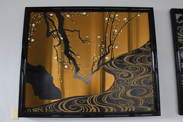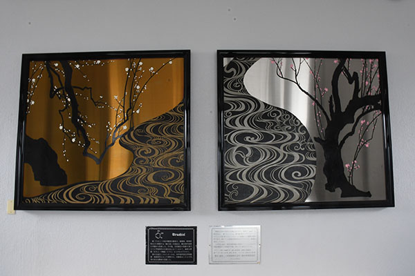 漆ステンレスを用いた尾形光琳《紅白梅図屏風》