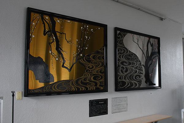 この作品は国宝・尾形光琳屏風絵の図柄をアレンジしたもので原画は熱海MOA美術館の所蔵、毎年2月に展示されている。