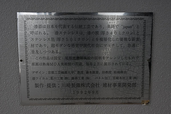 マテリアル・開発系 大講義棟に設置された漆ステンレス製品。