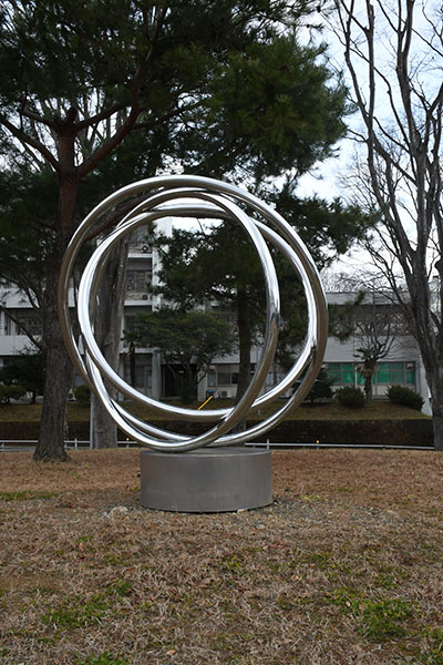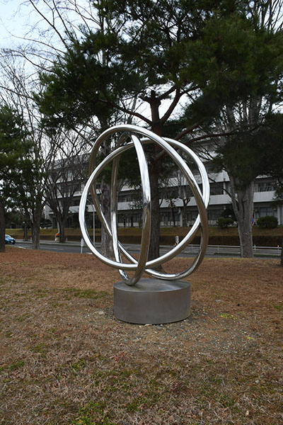 公開施設、記念碑等 「人 自然 金属」 人・自然・金属の調和を3つの輪で表現したオブジェ。1993年(平成5年)に住友金属工業(株)より寄贈された。 住友金属工業㈱ 1993 アクセス B02 マテリアル・開発系 材料実験棟 前