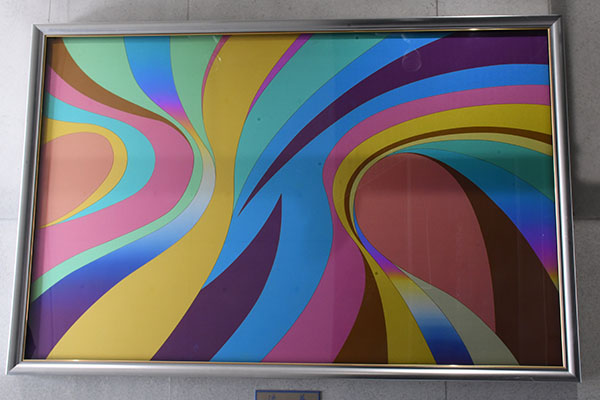 この作品は、チタン板の素材を陽極酸化することにより発色させたものである。電解液中でチタンを陽極酸化すると二酸化チタン皮膜が生成し、