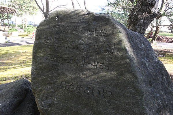 【石碑】 西澤恭介先生 退官紀念植樹 昭和三十年十一月三日 めたせこいや
