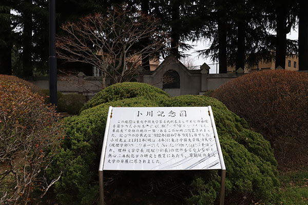 設置されました。記念碑の除幕式は1932年(昭和7年)9月11日でした。小川先生は1911年(明治44年)に東北帝国大学理科大学(現理学部)の化学