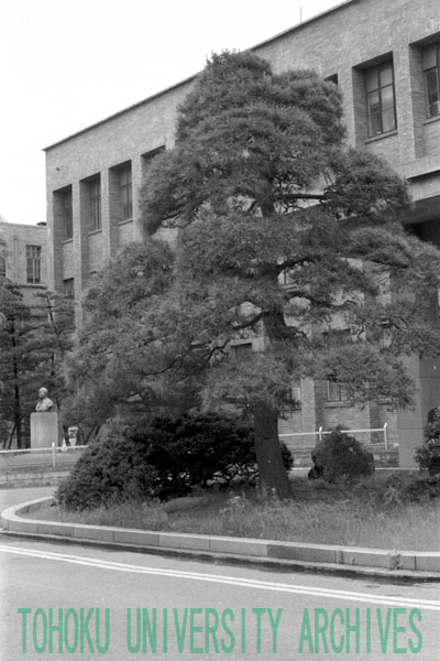 あった所で、本多光太郎先生在職25周年記念事業のために買収した土地に、老松のある官舎であった土地も含まれておりその松を本多先生が惜しまれたもので、現在地へ移植されたものです。