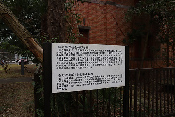 を中心に、大小178基の円墳が分布する。この石棺は、5世紀後半に造営された1号墳の5基の石棺の1つであり、石材は、花崗岩である。