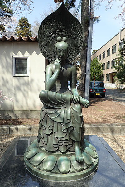 遺すことを許されなかった。よって知識と慈愛の権化たる観音像をもってこれに代えることにし、帝展審査員国方林三に嘱して、中宮寺如意輪観音を模した