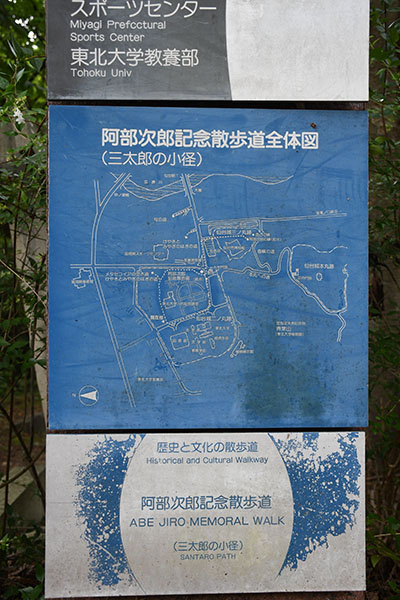 阿部次郎記念散歩道(三太郎の小径)は、近代日本を代表する哲学者・阿部次郎名誉教授(1883-1959年)の生誕百年を記念して大学と仙台市が協力して整備した散歩道です。ハイデルベルクや京都の「哲学の道」を意識して構想され、