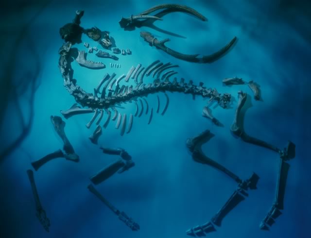 新第三紀は、約2400万年前から約180万年前までの期間をさし、それ以後現在までを第四紀とよんでいます。海洋ではイルカやクジラの仲間が多くの種に分化し、陸上では気候の寒冷化で乾燥するにしたがい、森林に代わって草原が広がり、ウシ科の動物が多様化しました。新第三紀後期の今から約300万年前には、北半球で大陸氷河が発達しはじめます。第四紀は、氷河時代ともよばれるように気候はさらに寒冷になり、約70万年前からは大陸氷河は約10万年ごとに拡大縮小を繰り返すようになりました。氷河期にはヨ-ロッパや北米の大半は厚い氷床に覆われていました。約1万8000年前以降温暖化が進み、現在は間氷期にあたります。