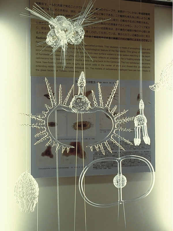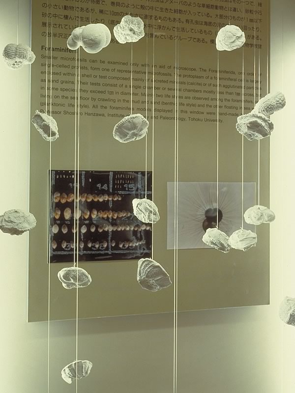 化石には、微化石とよばれる顕微鏡を使わないと詳しく観察できないものがあります。有孔虫や放散虫はその仲間で、細胞が一つしかない単細胞動物の仲間です。