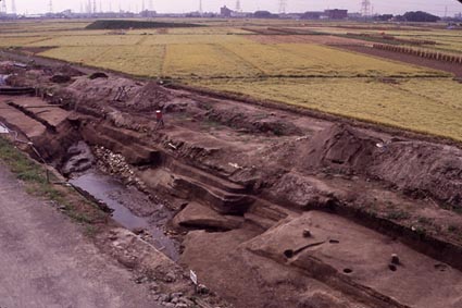 山王遺跡:遺跡内の旧河川の出土状況(