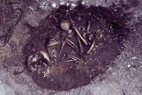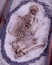 14. 里浜貝塚出土縄文時代晩期の人骨:埋葬状態のまま保存