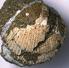竜の口層の化石では、保存状態がよいものは少ない。いくぶん横長。肋の数は35本くらい。 |