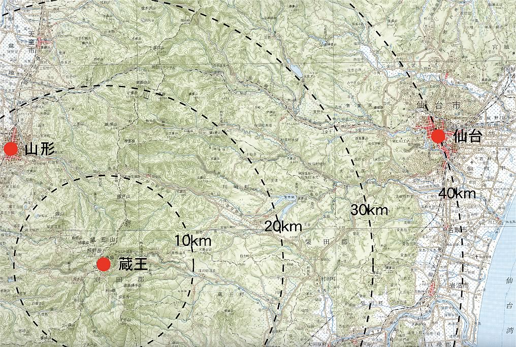 白頭山の巨大噴火と同じ規模の噴火が、仙台市に最も近い活火山である蔵王山で起こったとしたらどうなるでしょうか。山形市は500℃以上の火砕流堆積物によって埋めつくされ、仙台市にも名取川・広瀬川に沿って土石流が流れ込み洪水を引き起こし、場所によっては厚さ25mにおよぶ土砂が堆積して大きな被害をもたらすことになります。噴火の始めに作られた噴煙は最大高度28000mに達し、10時間以上続くと考えられます。そして、この10時間の間に蔵王の東側30km以内の地域では軽石が1m以上の厚さで降り積もり、場所によっては東洋のポンペイとなるかもしれません。