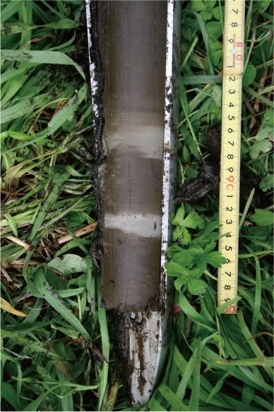 では、この10世紀の2回の噴火はどのくらいの時間で起こったのでしょうか。これは青森県の小川原湖のB-Tm火山灰と年縞(ねんこう)堆積物の研究から約1年と推定できます。B-Tm火山灰の間に年縞が一枚挟まれていたことがその理由としてあげられます。