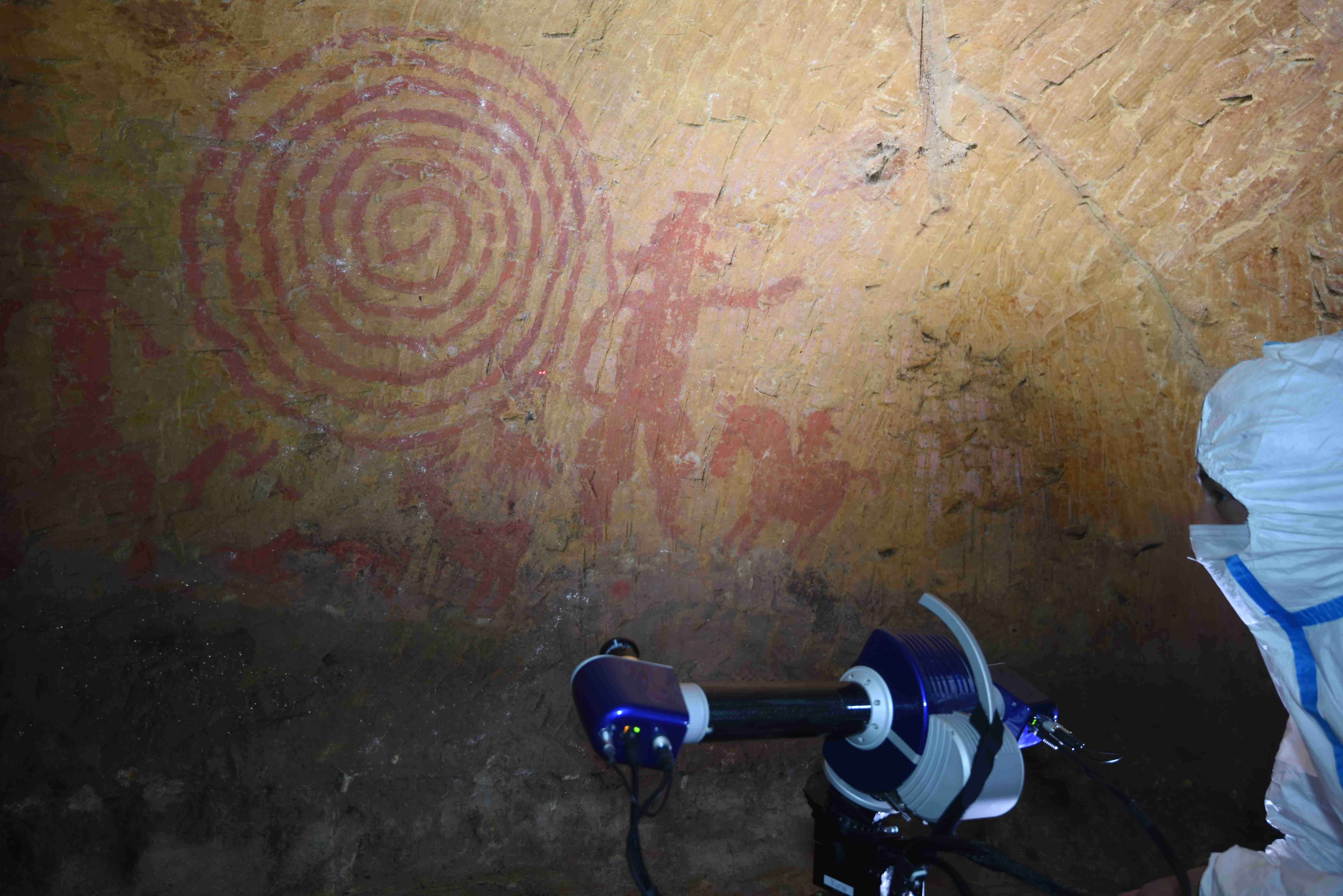 国史跡清戸迫横穴の3次元計測 総合学術博物館では、福島県双葉町の国史跡清戸迫横穴(きよとさくおうけつ)の3次元計測を、双葉町の協力を得て、2017年2月9日・10日に実施しました。 清戸迫横穴は、7世紀に築造された、赤色顔料で人物・動物などを描いた彩色壁画のある横穴墓で、双葉町や周辺地域を代表する文化財です。東日本大震災に伴う東京電力福島第一原子力発電所の事故による帰還困難区域に所在しており、従来のような一般公開は不可能なうえ、維持・管理にあたって万全な体制をとることが難しい状態にあります。詳細な3次元データを確保し、新たな研究材料とするとともに、将来の万一の事態に備えることは、貴重な文化財の保全と継承のために重要です。また3次元バーチャル展示方法などを利用して公開・活用することは、原子力災害によって困難な状況に置かれた当地域にとって、とりわけ重要な意味を持ちます。 総合学術博物館では、古生物学研究で利用してきた3次元計測技術を応用し、東日本大震災の震災遺構などの3次元デジタル測量と3次元バーチャル展示による、震災の記録と防災教育への利用を進めてきました。今回の計測事業は、東北大学の平成28年度総長裁量経費「福島原発事故被災地域復興のための3次元記録を用いた地域の記憶継承・活用プロジェクト」における経費を用いて実施しました。 計測にあたっては遺構の保全を第一に様々な条件を検討し、ドイツ・ブロイックマン社製の光学式非接触ハイエンド3DスキャナであるsmartSCAN-HEを使用しました。壁面の工具痕跡も詳細に再現でき、スペースの限られる場所での高精細3次元計測にとって、有効な方法であることを証明できました。 今回の計測事業は、朝日新聞、読売新聞、河北新報によって報道されました。朝日新聞では全国版一面に掲載されるとともに英語でのWEB配信もなされ、社会的な関心が高いことを示すものです。 >朝日新聞記事(2017年2月10日