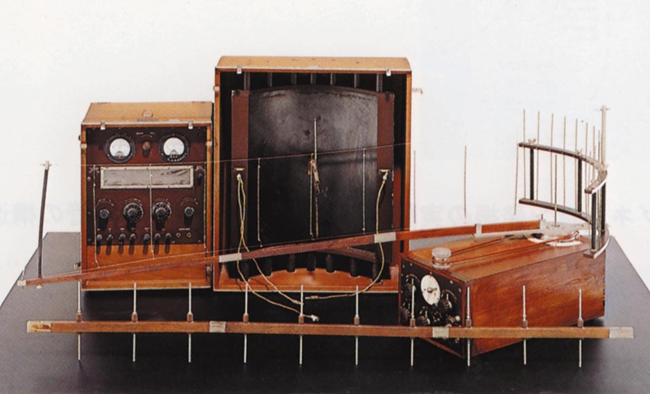 八木・宇田アンテナ 1925年に東北大学の八木秀次・宇田新太郎により考案された八木・宇田アンテナ(電氣通信研究所所蔵)。