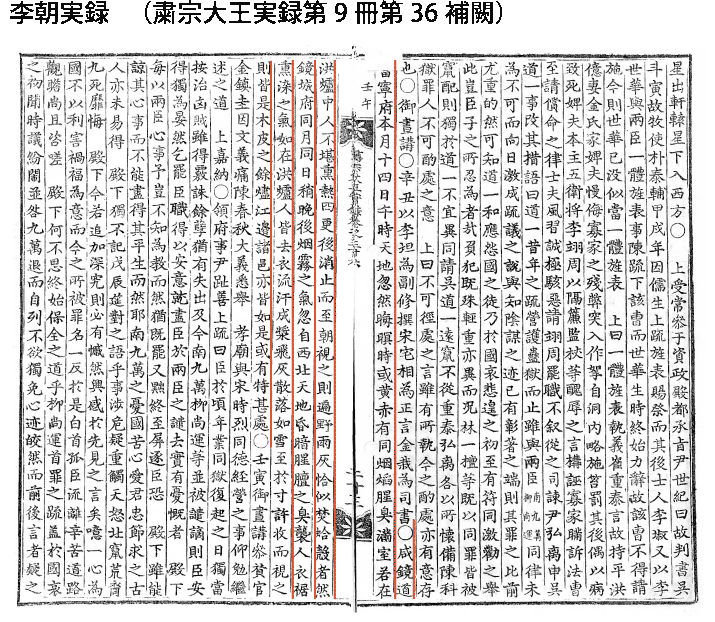 李朝実録 粛宗大王実録第9冊第36補闕1702年6月9日(清朝聖祖康煕四十一年五月十四日)  李朝実録第四十巻三、粛宗実録三十六巻